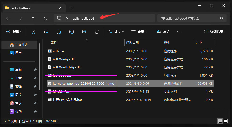 手机重新连上电脑,切到文件传输模式,进Download文件夹把刚才生成的patched镜像复制到电脑上的adb-fastboot文件夹里,名字可能每次都不一样,注意别搞混了。