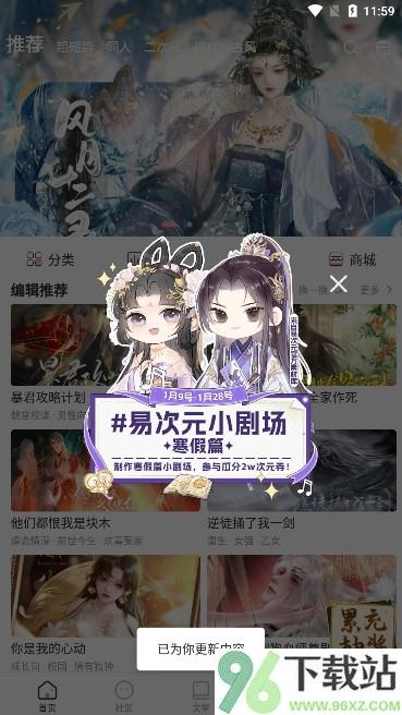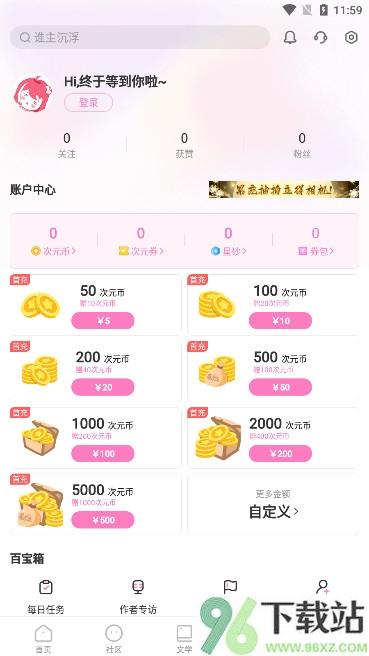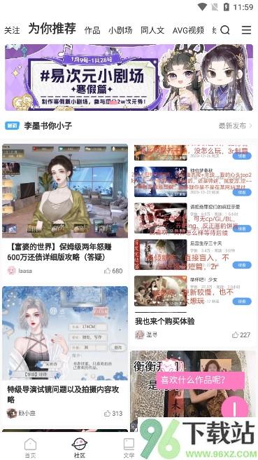 1、先在96下载站把网易易次元编辑器app下载安装好,注册完账号就能直接进首页浏览热门推荐内容。
