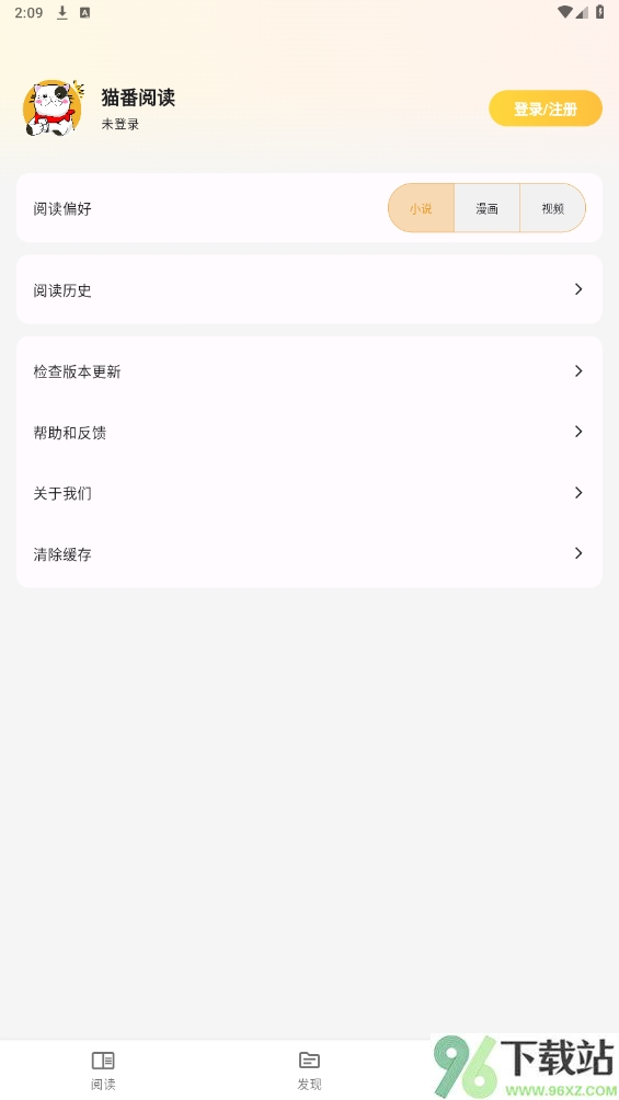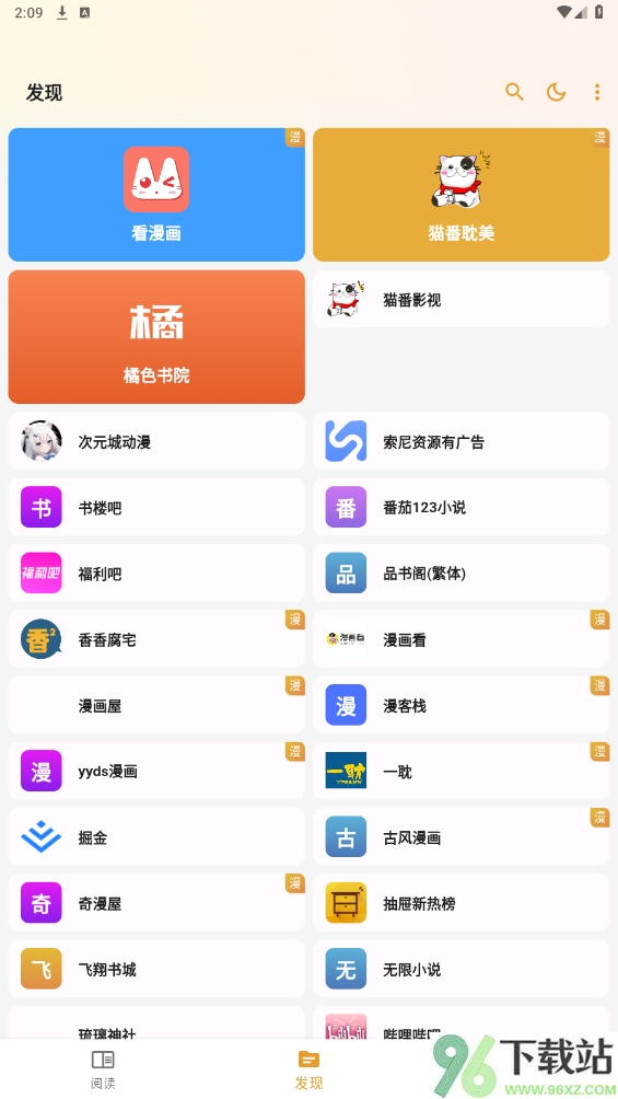 1、打开猫番阅读app后先进主页,底部导航栏有书架、发现和我的三个入口,点发现能直接浏览各类热门书籍和漫画。