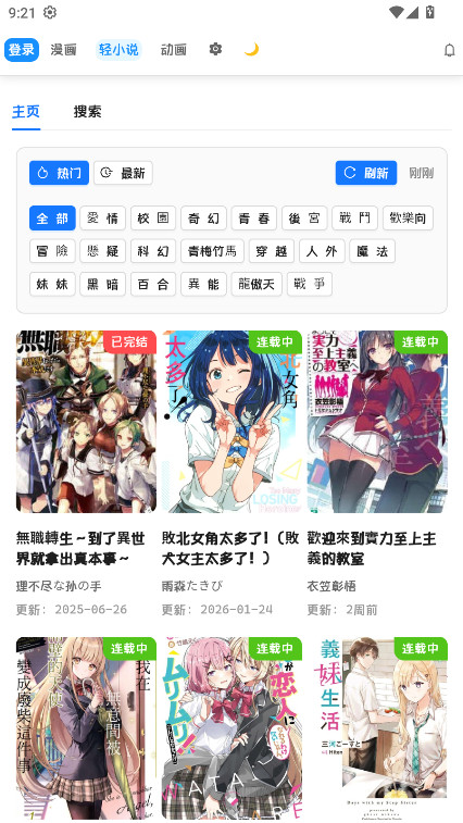 1、漫画和轻小说放在一个App里搞定,热门新作更新快,老番资源也挺全。