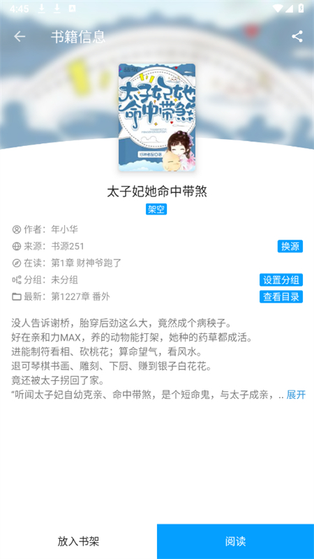 3、进到书籍详情页,右下角有个“开始阅读”按钮,点一下就进阅读界面了。要是发现章节不全或者内容不对劲,可以点页面上的换源按钮试试别的来源。