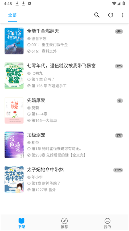 1、书库挺全的,每天都有大量新连载更新,从都市职场到玄幻修仙、甜宠言情,三十来种类型基本都能覆盖到。