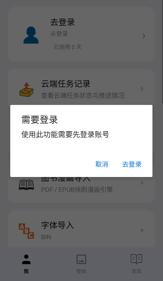 1、刚打开 App 时,先点进“我的”页面,最顶上有个“去登录”的按钮——这一步不能跳过,没登录的话连导入功能都用不了。