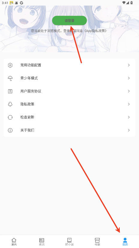 1、打开再漫画App,点右下角“我的”,顶部会看到“请登录”的提示,点进去就行。