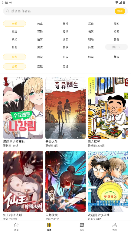 2、点底部导航栏里的“分类”,能看到各种题材标签,比如热血、校园、悬疑、搞笑之类的,按兴趣挑就行。
