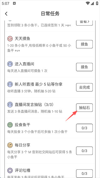 5、做完之后返回任务页面,你会发现刚才的“发消息”变成了“抽钻石”,直接点它。
