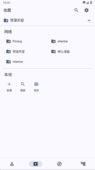 1、启动PicaComic,进入“收藏”页面,点右上角那个齿轮图标进设置