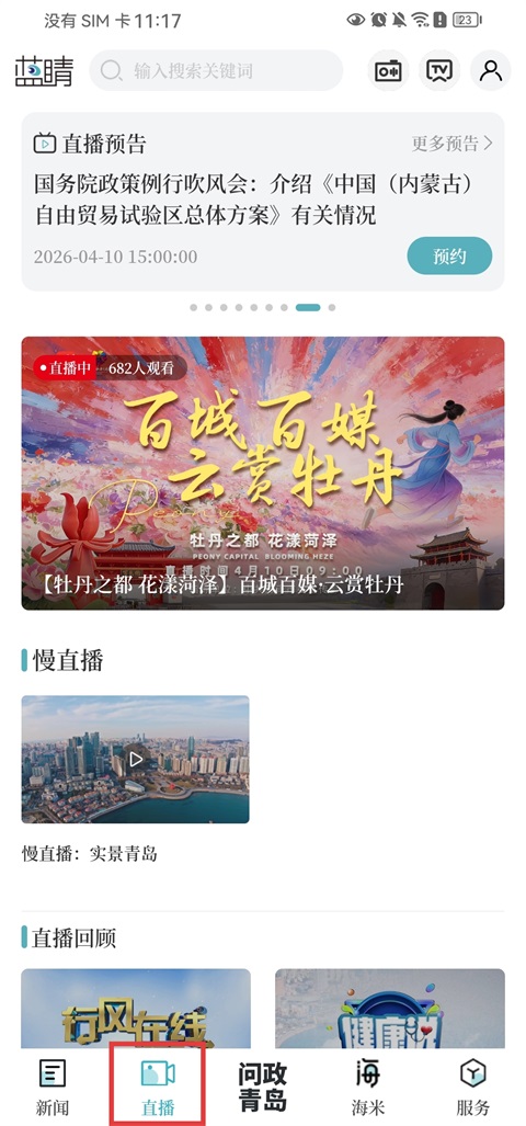 1、启动蓝睛App,点击底部导航栏进入【直播】栏目;