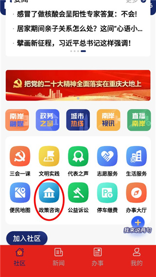 2、首页正中间有个“政策咨询”入口,点进去就能开始提问;