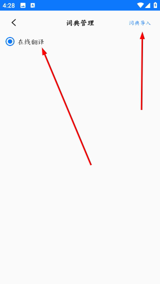 4、在词典管理页面,可启用在线翻译服务,也可通过右上角“导入词典”按钮添加本地词典文件(如 StarDict 格式),实现离线查词。