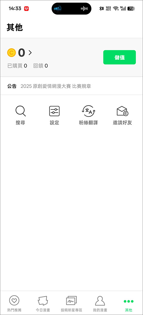 这款应用启动之后默认显示的就是繁体中文界面,所以不用额外去改语言设置,下面讲的是如何找到并阅读带有中文字幕的漫画内容