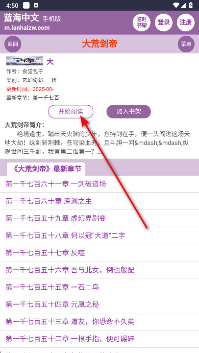 1. 打开蓝海搜书App,挑一本感兴趣的小说点进去