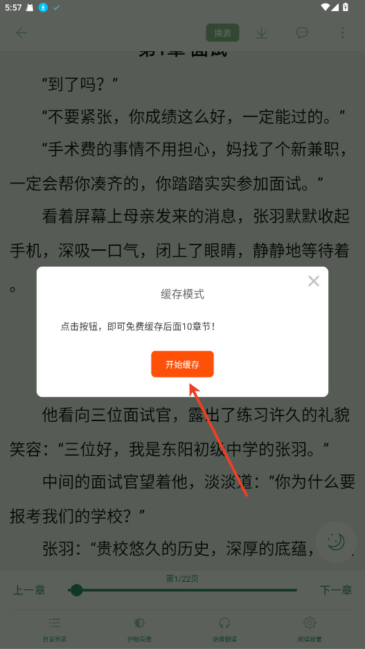 弹出来的窗口里选好要缓存的章节范围,然后点“开始缓存”就完事了