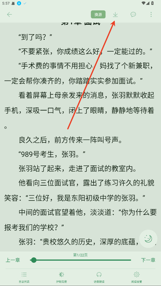 进入阅读界面后,留意右上角有个下载图标,点一下它