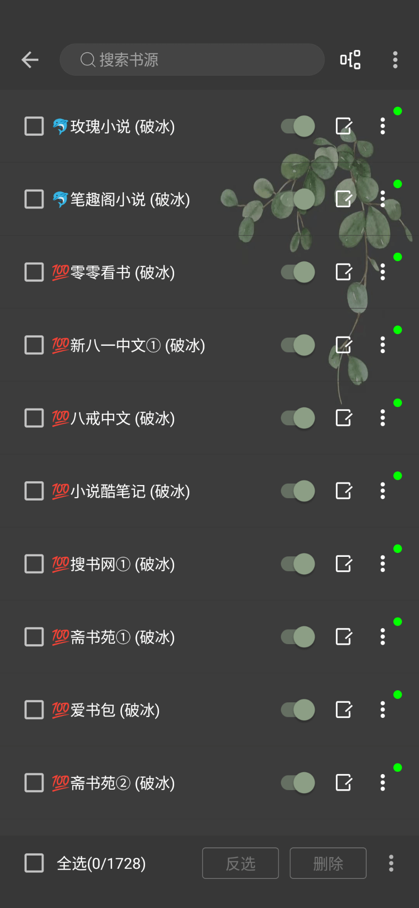 5、导入完成后勾选全部书源,点右下角“确定”,之后就能直接搜索你想看的小说了