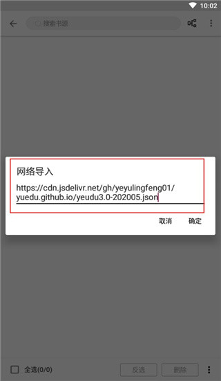 3、把上面任意一个书源链接粘贴进去,点确定就行