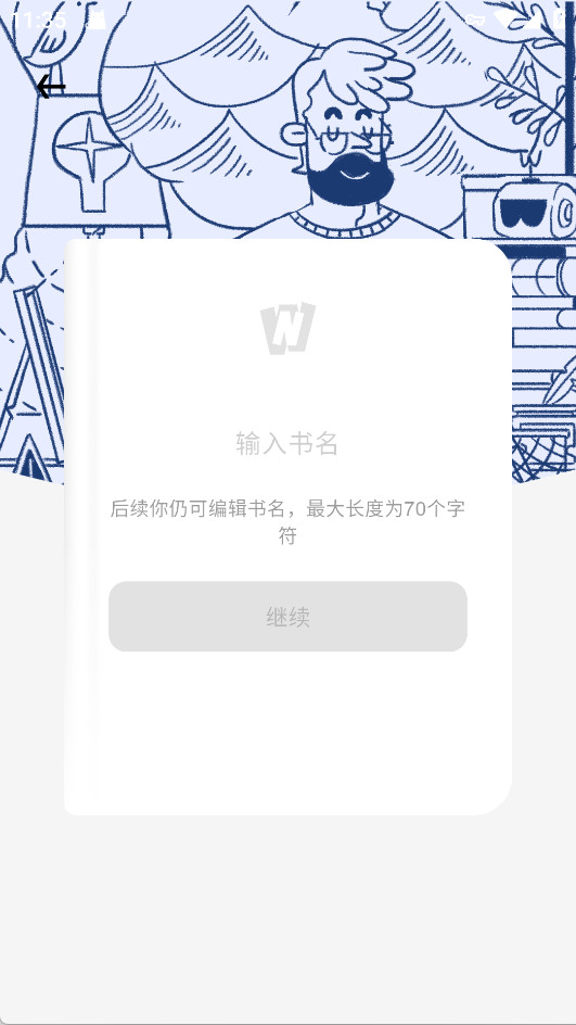 4、给你的小说起个名字(最多70个字符,之后还能改),填好后点“继续”