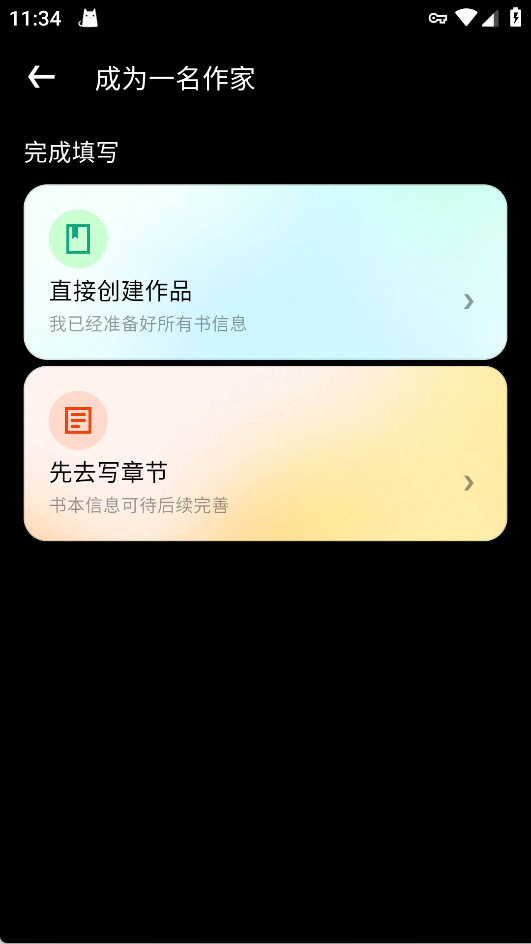 2、仔细看看平台给作者提供的各项权益说明,确认没问题后点“完成填写”,接着补充你的作者资料