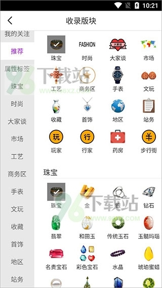 5、点开之后呢,可以选“收录板块”,这底下就会出现一大堆分类,啥珠宝、时尚、大家谈、市场...哎哟喂,有好几百种呢。