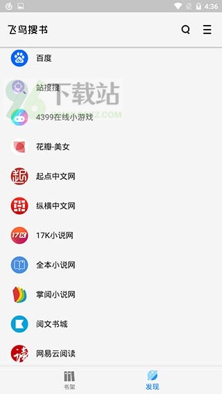 1、首先打开飞鸟搜书,在主页你就可以直接把你喜欢的书加上,当然,你也可以在下面的“发现”页面看看有没有什么新发现。
