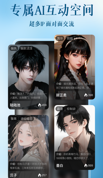 几百个不同性格的AI角色可以自由选择,找到聊得来的那个开始对话。