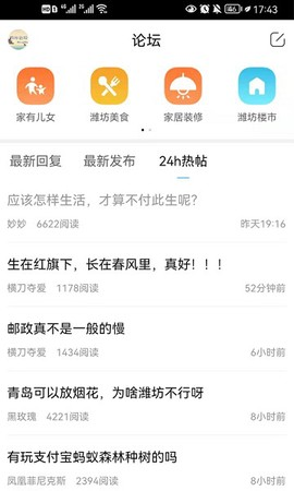 潍坊论坛app,就是咱们潍坊人自己的地盘儿,想看看最近家门口出了啥新鲜事,想知道哪家小馆子新出了爆款菜,或者想找人拼车、问个搬家的电话,都不用到处问了,这个App早就给你都准备好了,邻里街坊都在用,不管你是想打听政策、找对象,还是买家具、看房,手指动一动,信息立马就来,不像那些花里胡哨的软件,光会堆功能,这儿的信息都是实打实的,说话也接地气,下载装上之后你会发现,它不光是个工具,更像是本地人过日子的一个帮手,啥时候用都顺手。