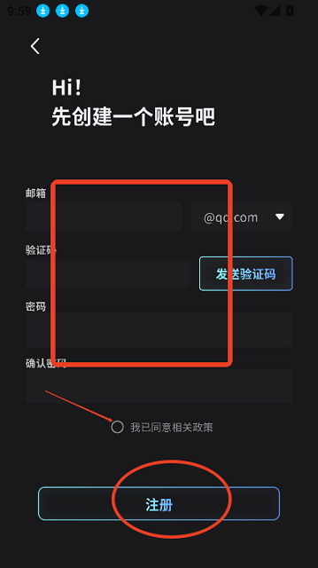 2、填写有效邮箱、设置密码,并输入验证码。务必勾选用户协议才能继续,完成后即可登录使用全部功能。