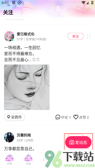 5、除了私聊,你还能在动态区发自己的日常,晒生活、表兴趣,让更多人了解真实的你。