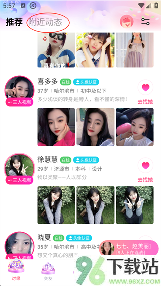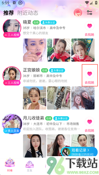 2、选完之后,首页就会推送一批符合你性别的单身用户,头像和简介一目了然。