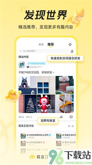 狐友是搜狐自家打造的一款社交应用,主打真实互动和兴趣连接,特别受学生党和追星族欢迎。平台鼓励用户用图文、短视频等方式展现日常,轻松找到聊得来的朋友或同好圈子。在这里,你不仅能刷到新鲜有趣的内容,还能通过智能推荐遇见志趣相投的人,发个动态、转个帖、聊几句,都有人回应,氛围挺暖的。