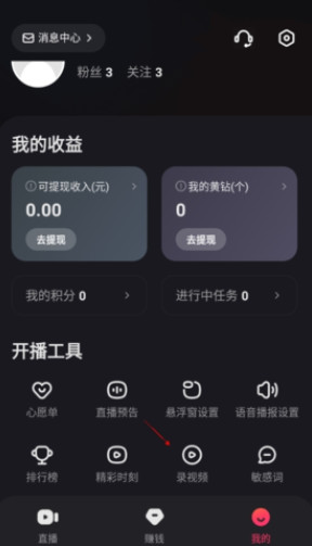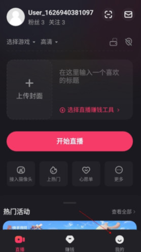 1、先打开快手直播伴侣App,点进右下角的“我的”页面