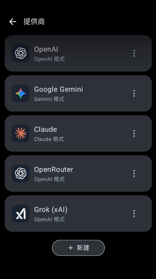 目前支持OpenAI、Google Gemini、Claude,还有Grok(xAI出品),基本覆盖了市面上主流的大模型。