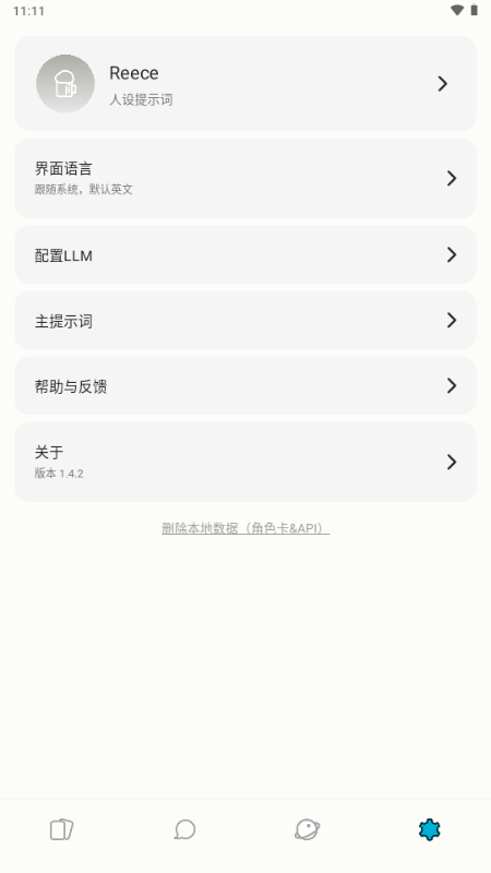软件默认跟着手机系统走,如果你手机是中文系统,打开就是中文界面。万一显示的是英文,也可以去设置里手动切换。至于角色介绍还是英文的问题,其实很简单——只要在对话开头告诉AI“请用中文回答”,它就会乖乖切换过来。