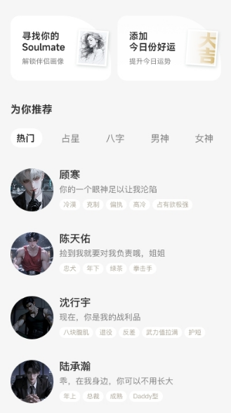 4、除了日常聊天,它还整合了星盘分析这类功能,用AI帮你梳理情绪或做决定,适合需要陪伴又不想被打扰的人。