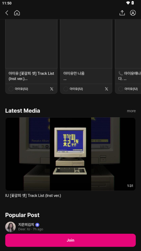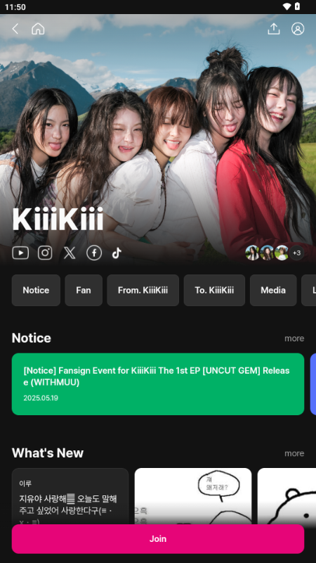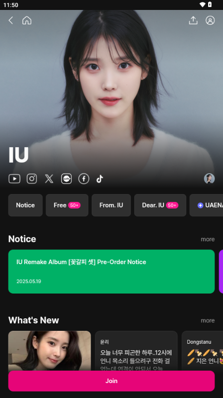 找到喜欢的艺人后,点击底部那个Join按钮就能顺利加入专属社区