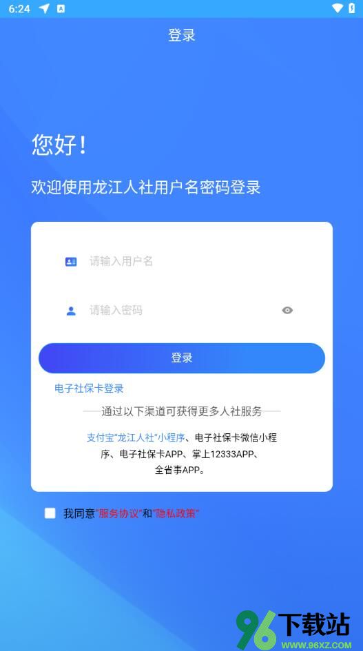 1、在96下载站下载安装龙江人社App后,打开应用。