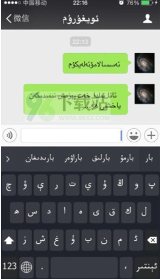 3、在聊天窗口选择维语键盘,轻松打出老维文或拉丁维文,给家人朋友发消息更地道;