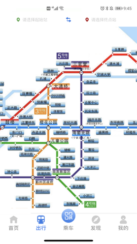 2、进入首页点击“出行规划”,选择起点和终点后,系统会自动生成推荐路线,并显示所需时间和换乘信息。