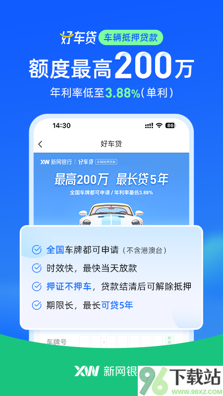 “好车贷”支持最高200万额度,年利率从3.88%(单利)起,全国大部分地区都能办(港澳台除外)。最关键是——只押车辆登记证,不扣车!办完手续照样开车上下班,最快当天就能放款,贷款期限最长5年,结清后还能快速解押。