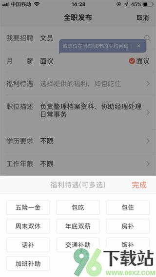 6、然后补充福利待遇,比如有没有五险一金、餐补、双休这些,写清楚更容易吸引人。