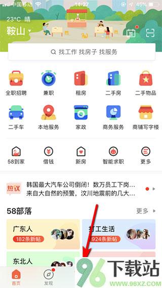 1、先打开58同城App,进到首页后,点底部中间那个“+”号按钮,就能开始发布信息了。