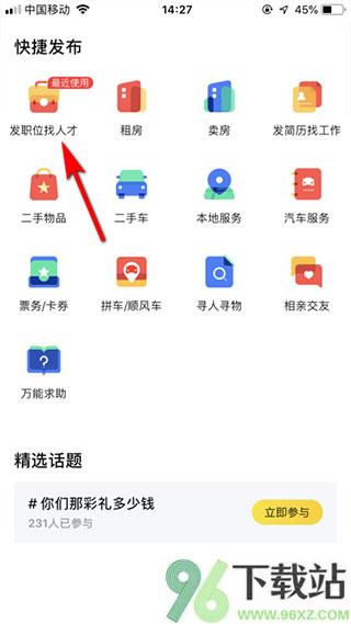 2、接着会弹出一堆可选的发布类别,比如二手、服务、房产之类的,这时候要选跟招聘相关的选项。