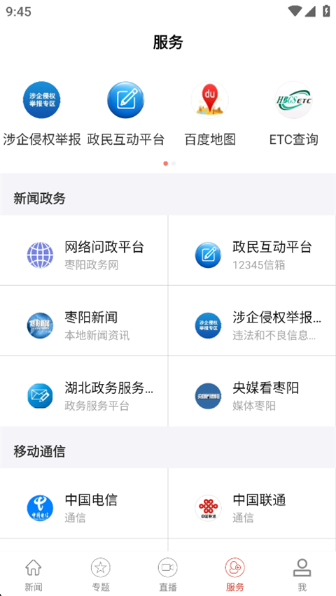 1、网络问政平台 2、政民互动平台 3、涉企侵权举报专区 4、湖北政务服务网 5、枣阳新闻 6、央媒看枣阳