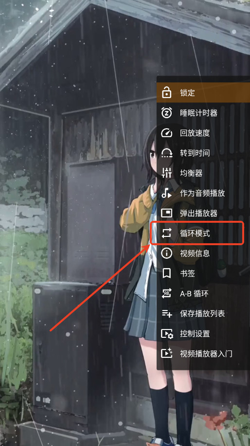 在弹出来的菜单里找到“循环模式”,点一下就开启了。