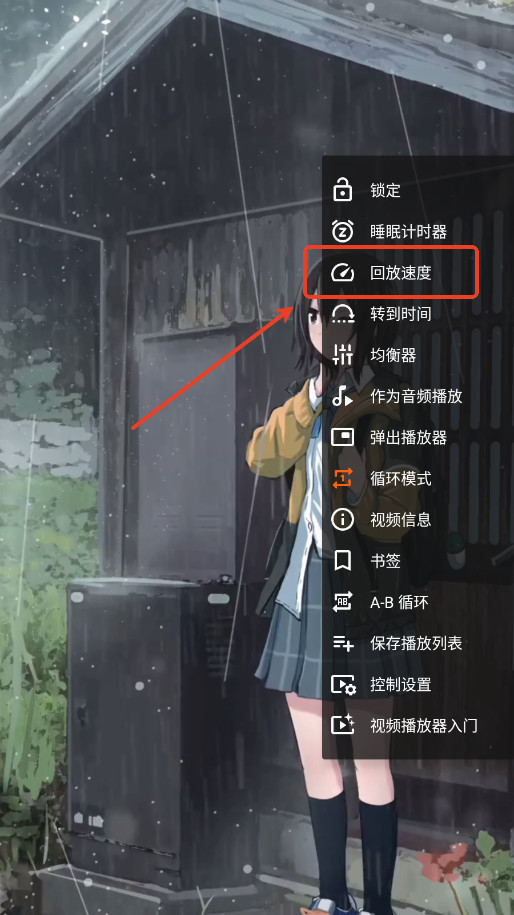 同样从右下角那三个点进入菜单,在里面找到“回放速度”这一项。