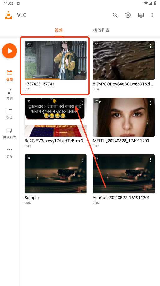 先把你想反复看的视频用VLC打开。