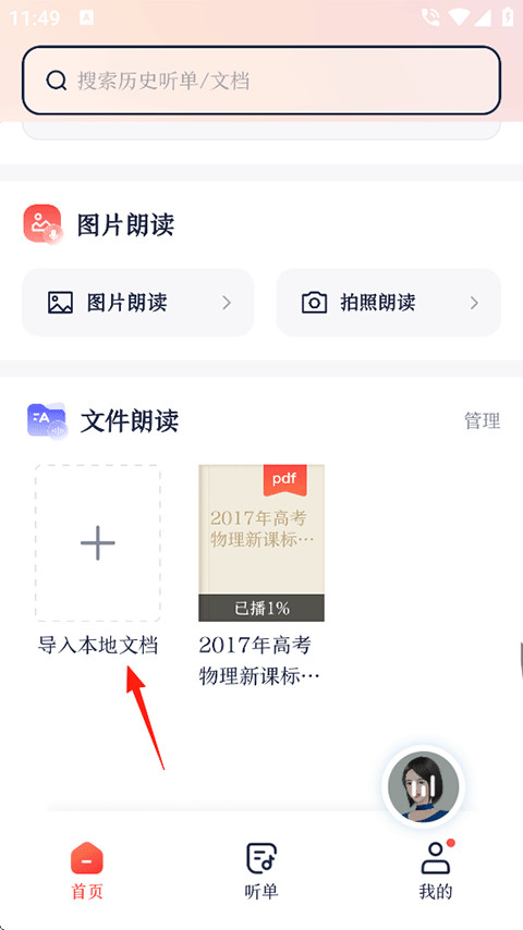 3、导入成功的文件会统一出现在“文件朗读”列表里,随时点开就能接着听。