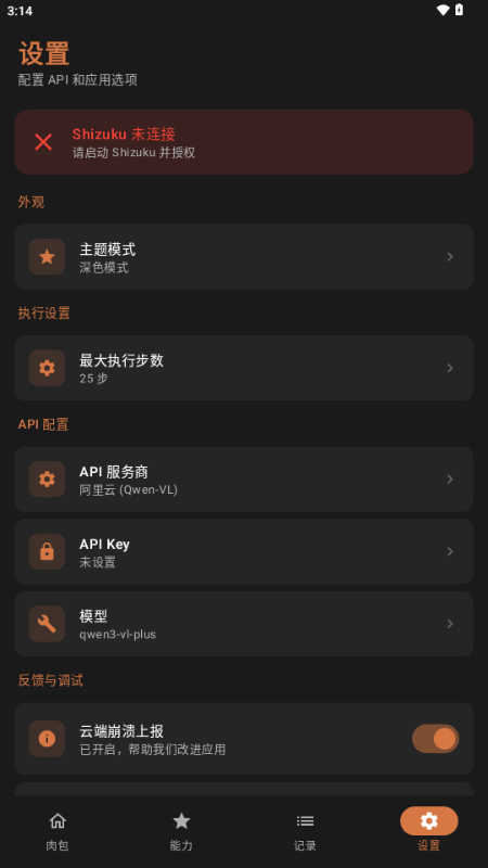 首先得装好Shizuku,进系统设置里的开发者选项打开无线调试,然后授权给肉包。这一步是让软件能安全地调用系统能力,别跳过。