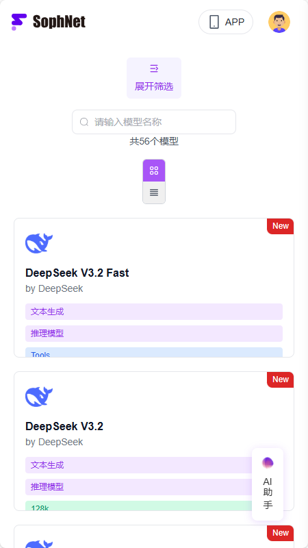 4、底层跑的是高性能推理模型,其中就包括SophNet自家打磨的 DeepSeekV3.2 Fast 大模型