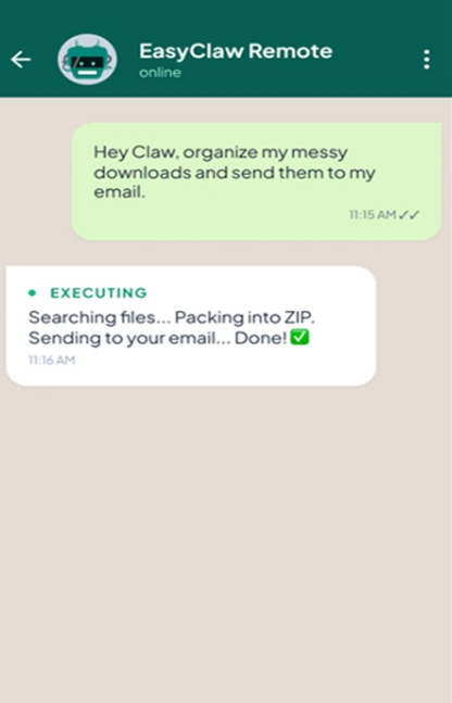 2、配合手机App,即使人不在电脑前,也能远程发指令,家里的主机或云实例会自动响应并执行任务。